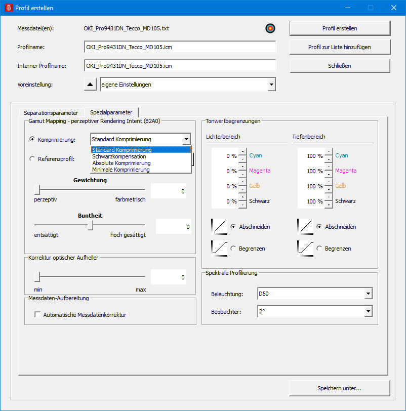 basICColor print 5 bietet umfangreiche Möglichkeiten zur Einstellung der Farbseparation, Anpassung an verschiedene Druckverfahren und die bisher einzigartige Möglichkeit, das Verhalten des perzeptiven Rendering Intents zu definieren.