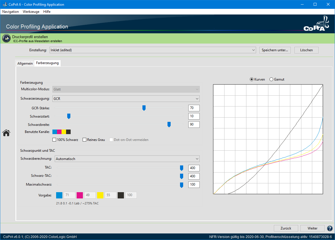 Erstellung von Ausgabeprofilen RGB und CMYK bzw. Grau mit CoPrA Basic oder CoPrA M
