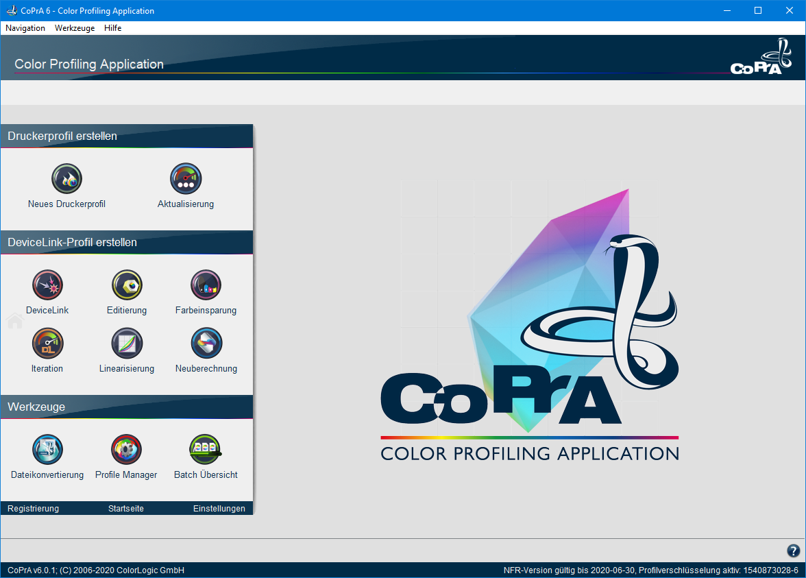 CoPrA vereint eine erstklassige Ausgabeprofil-Erzeugung mit der bewährten DeviceLink-Technologie aus dem Hause ColorLogic. Die Software beinhaltet alle wichtigen Werkzeuge und Funktionen, die professionelle Anwender benötigen, um hochqualitative Profile erstellen zu können.