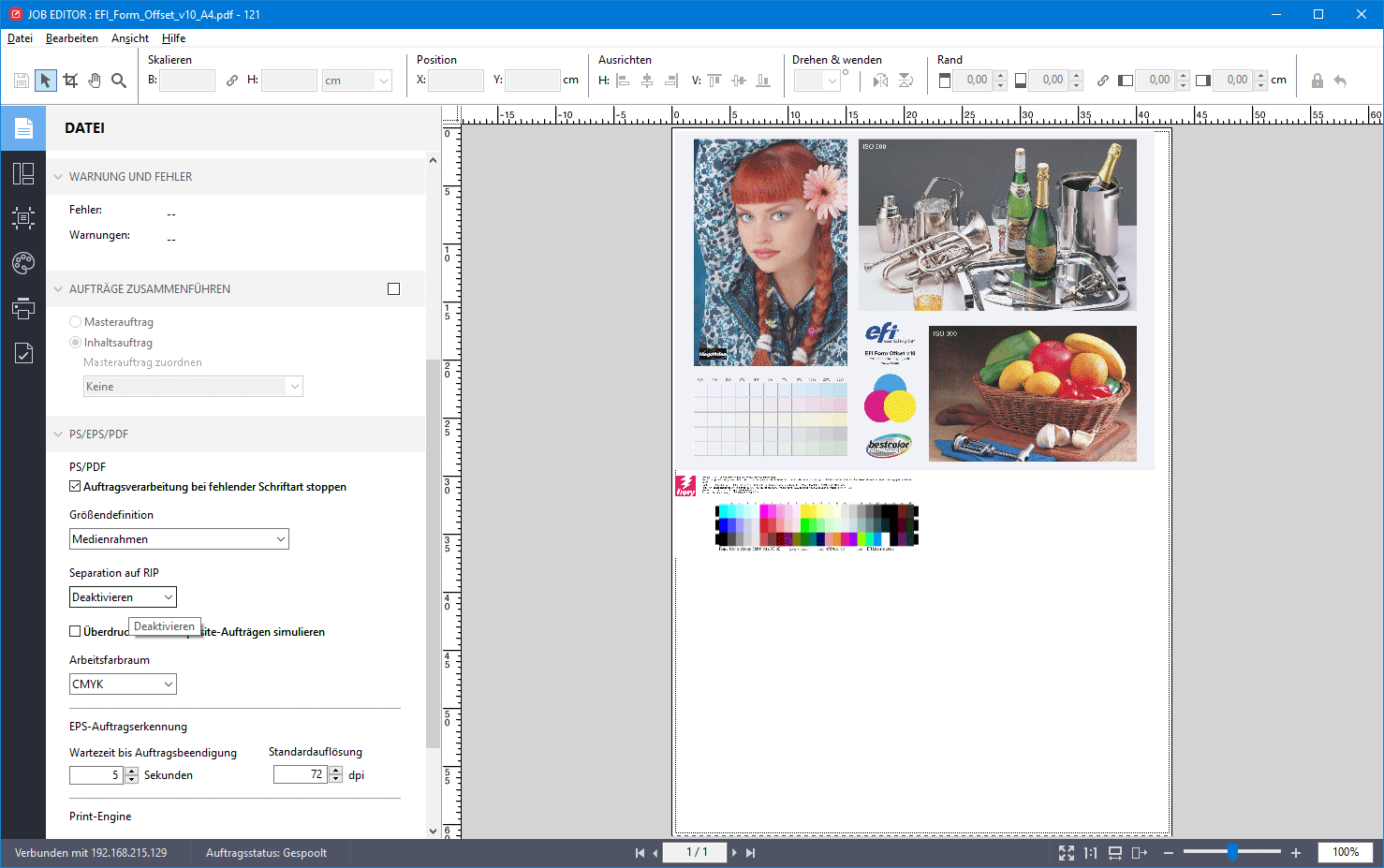 - In EFI Fiery XF laden mit InRIP-Separation deaktivieren